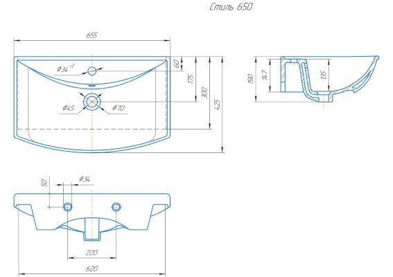 • 650 - (ШхГхВ), в см: 65,5х41,7х13,5