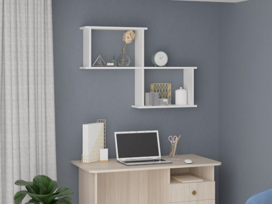Полка прекрасно подходит для полноценной обстановки рабочего места, гостиной, детской. Конструкция выполнена в виде двух вместительных полок, которые находятся на разной высоте. Такую модель можно использовать для рабочих материалов и предметов декора, расширяя полезное пространство.