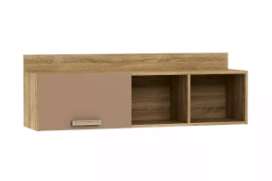 Полка органично дополнит рабочее место в детской. Закрытая секция модуля подойдет для хранения книг. Газлифты максимально высоко поднимают фасад вверх, обеспечивая большую площадь обзора содержимого. Предметы декора будут хорошо смотреться в открытых секциях полки.