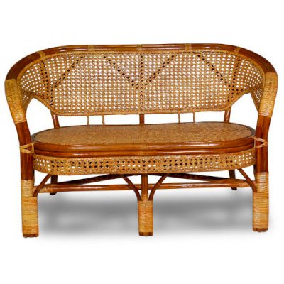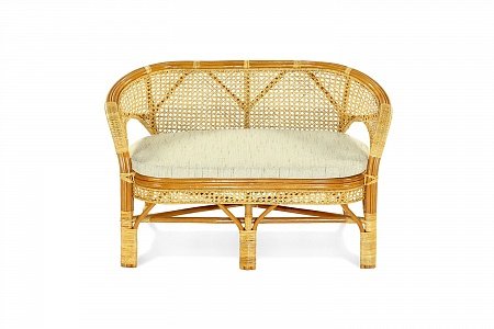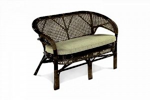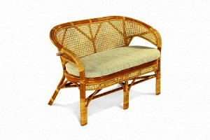 Двухместный диван из ротанга с подушкой.
