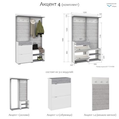 Прихожая Акцент 4 (Аквилон) - за 23 321 руб. в Лобне. Купите на сайте lobnya.onlinemarketmebeli.ru или по телефону 8(800)505-30-63 уже сегодня! Уточнить наличие, комплектацию, актуальную цену можно бесплатно у менеджера ежедневно. Закажите Прихожая Акцент 4 (Аквилон) до конца акции! Доступна покупка в кредит, рассрочку. Доставим со склада или на заказ.